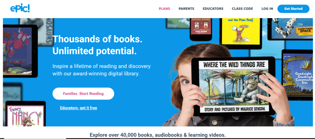 Epic! is like a Netflix for children’s books. With over 40,000 titles, kids can read stories, comics, and educational books at their own pace. It encourages independent reading and allows parents/teachers to assign books.